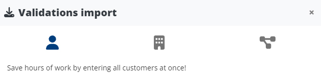 Antes de elegir el archivo de importación, deverá elegir el tipo de validaciones a importar seleccionando el icono correspondiente: